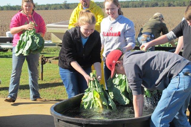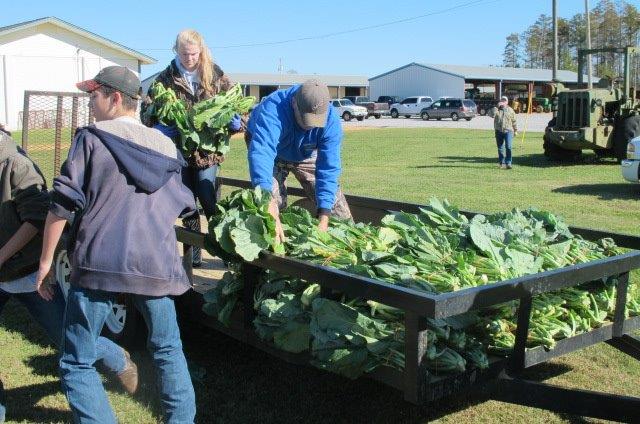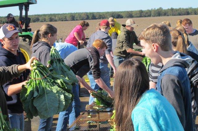 The FFA students from Northview High School, Tate High School, Jay High School, Central School, Beulah Academy, West Florida High and Ernest Ward Middle School harvested hundreds of bundles each of collard and turnip greens and sorted over a ton of donated sweet potatoes.