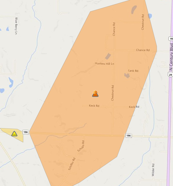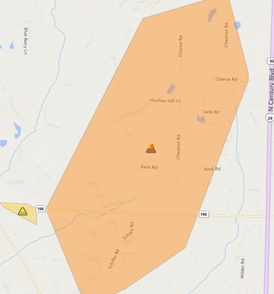 Most of those that lost power — located along and near Chestnut and Chance roads — had their power restored by 10:20 p.m. The restoration for about 30 customers along Highway 196 took until about 11 p.m. as the downed line was repaired.