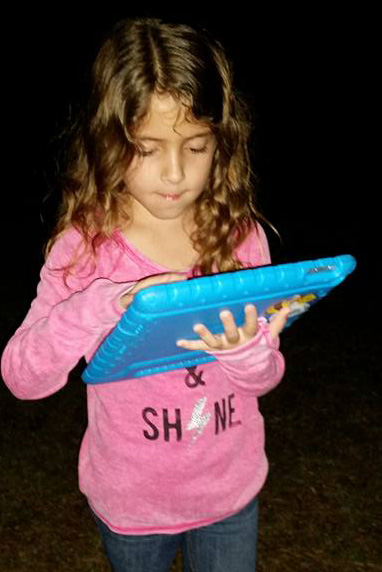Pictured top: The moon as seen from the stargazing event Friday night in Molino. Pictured inset: Molino Park student Sophia St. Cyr uses an iPad app to locate stars. Reader photos for NorthEscambia.com, click to enlarge.