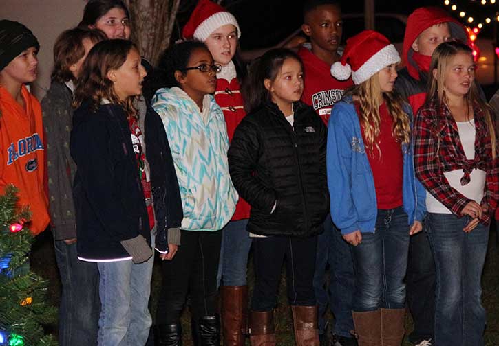 The Century Town Council held a Christmas Tree Lighting Ceremony Thursday night at the Nadine McCaw Park. The Byrneville Elementary School Chorus led Christmas carols during the event. The lights are on nightly in the park, which is located on North Century Boulevard at Hecker Road in Century.