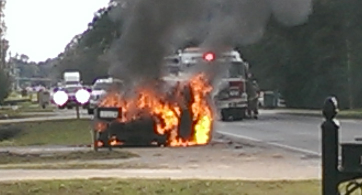 There were no injuries in vehicle fire mid-afternoon Sunday in the 10000 block of Chemstrand Road, near East 10 Mile Road. The fire was quickly extinguished by the Ensley Station of Escambia Fire Rescue. The fire did shut down the roadway for a short period of time. Reader submitted photo for NorthEscambia.com, click to enlarge.