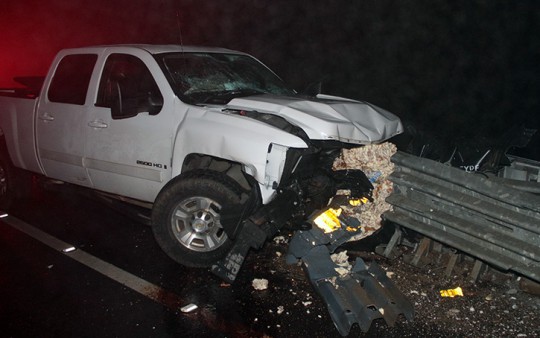 A passerby discovered the accident about 2:45 a.m., but the driver had already left the scene. It appeared the driver of the Chevrolet Silverado 2500 was southbound on Highway 97 north of Wiggins Lake Road when they lost control, traveled across the roadway and collided with a guardrail bumper.