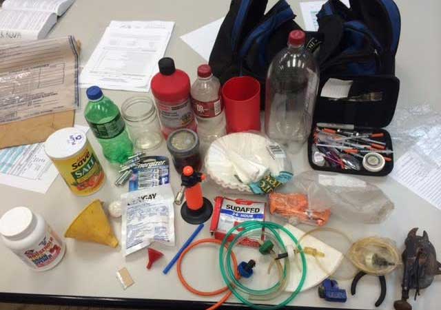A search revealed a large duffle bag containing “numerous precursor chemicals and other paraphernalia used to manufacture and ingest methamphetamine,” police said.