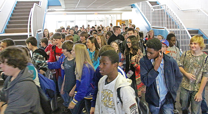 Students moved into the new Ernest Ward Middle School in February for the first day of classes in the new building.