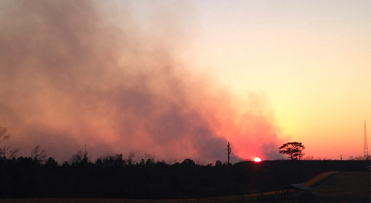 A wildfire near Flomaton, AL, consumed over 500 acres.