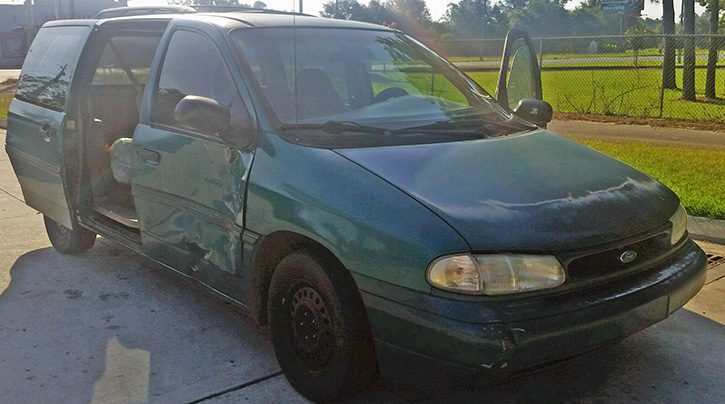 According to the Florida Highway Patrol, 24-year old Douglas Joseph Hadley was traveling east on Muscogee Road in a 1996 Ford Windstar van when he made a wide right turn onto Highway 29 and into the path of a marked Escambia County Sheriff’s Office 2015 Chevrolet Tahoe on July 27.