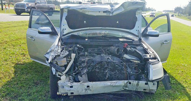 Sgt. Marc Dewees received minor injuries in the crash. Hadley was not injured. Both were wearing their seat belts.