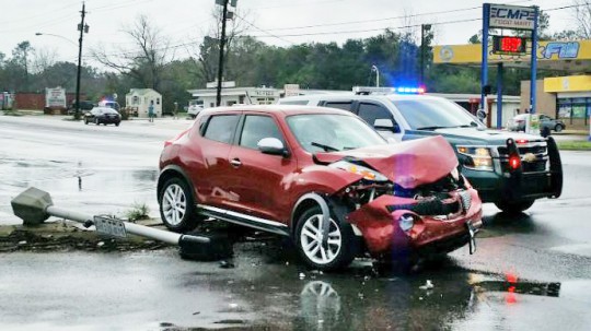 The owner said the Nissan Juke (pictured top) was stolen out of their yard. It was involved in a two-vehicle crash at the intersection of Highway 29 and Muscogee Road about 9:15 a.m. Monday, and it also hit a pedestrian crossing signpost.