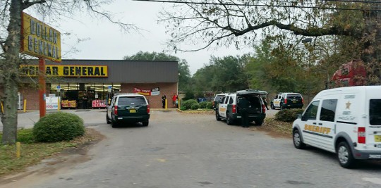 The armed robbery was reported about 3:12 p.m. Sunday at the Dollar General on Pine Forest Road near Highway 297A, near the rear of the Publix store on Nine Mile Road at Pine Forest.