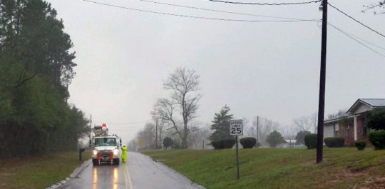 Pictured above: Gulf Power works on a downed line near the intersection of Chavers and Molino roads in Molino. NorthEscambia.com photo by Kristi Price.