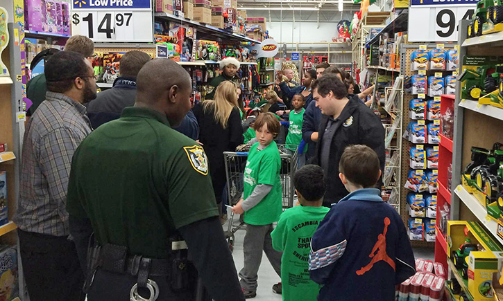 Each child received $125 to shop with a deputy from the Escambia County Sheriff’s Office. They were able to gift shop for family members and themselves.