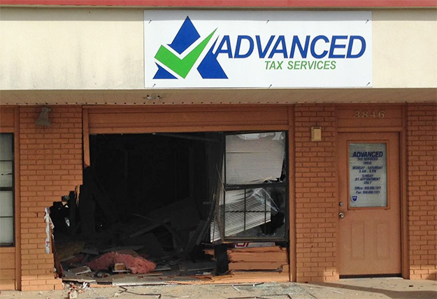 The crash occurred about 10:50 a.m. at Advanced Tax Services in the 3800 block of North Davis Highway.