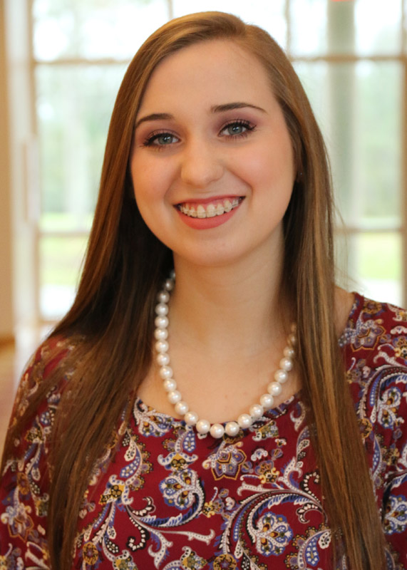 Moriah is the 18-year old daughter of Greg and Candy McGahan. She has been a member of the weightlifting team for three years, a member of the Beta Club for three years, where she has served as treasurer and vice president, and a member of the NJROTC for four years where she currently holds the title of commanding officer. Moriah is a founding member of the Model United Nations team, a member of the Fellowship of Christian Athletes for three years, and a member of the musical theater program for three years. She has been a member of the track team for three years, a member of the cross country team for four years, where she was the recipient of the Junmi Ross award and holds the title of team captain, and a member of the Future Farmers of America for four years and has been the treasurer for the past two years. Moriah has been in the student government association for three years and has been the treasurer for one year, was selected to be in the NHS Hall of Fame, has been an Atmore Rotary Club Academic All-Star for three years, and was also selected to receive the Ronald Reagan Student Leader award. In her community, she volunteers her time with Loaves and Fishes, is an active member of Highland Baptist Church, where she participates with the youth band and choir, and is part of the American Sign Language group at Pensacola State College where she is the public affairs officer.