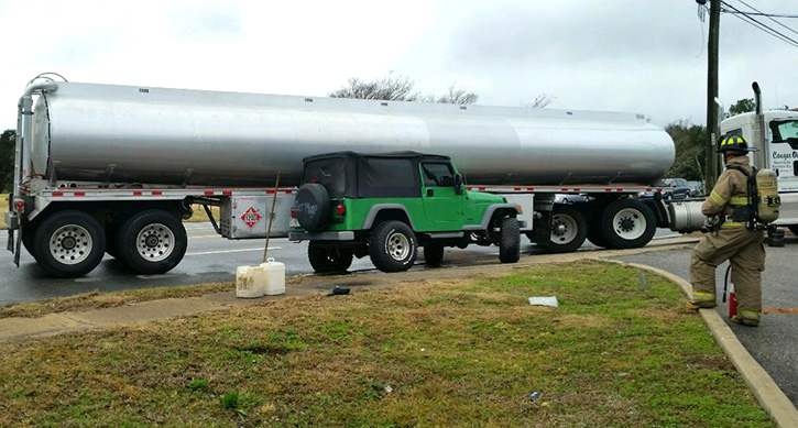 Jeep, Gasoline Tanker Collide In Cantonment (Updated Details)
