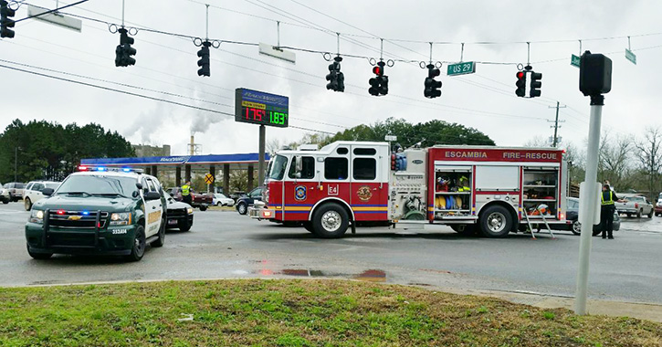 There were no serious injuries reported in a two-vehicle collision Wednesday night at the intersection of Highway 29 and Molino Road in Molino. The accident remains under investigation by the Florida Highway Patrol. The Molino Stations of Escambia Fire Rescue, Escambia County EMS and the Escambia County Sheriff’s Office also responded. NorthEscambia.com photos by Kristi Price, click to enlarge.