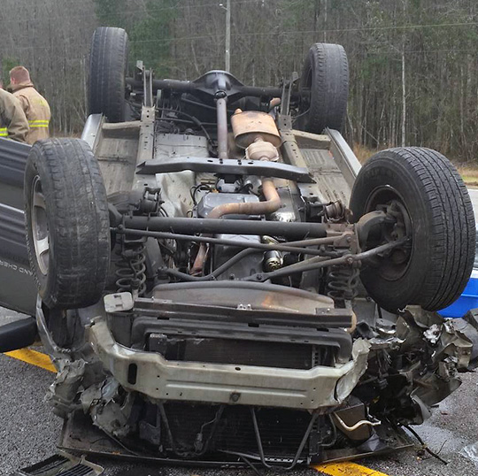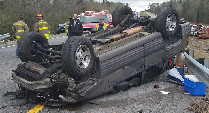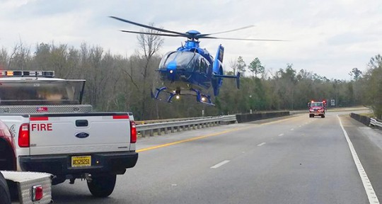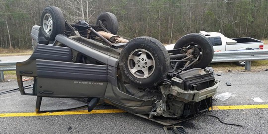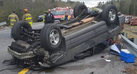 The driver of a Jeep Cherokee slammed into a guardrail, with the vehicle then overturning onto the roadway. One person was airlifted by LifeFlight to a Pensacola hospital with serious injuries following the 12:10 p.m. wreck..