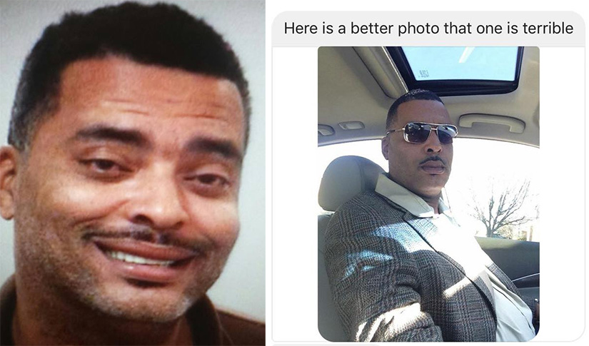 Donald A. “Chip” Pugh, 45, was wanted by the Lima Police Department in Ohio for failure to appear. They posted his mugshot to their Facebook page, which they had on file from a previous arrest. Pugh apparently did not like the official mugshot; he sent Lima Police a selfie photograph showing him wearing a dress shirt and jacket, wearing sunglasses, in a car with a sunroof.