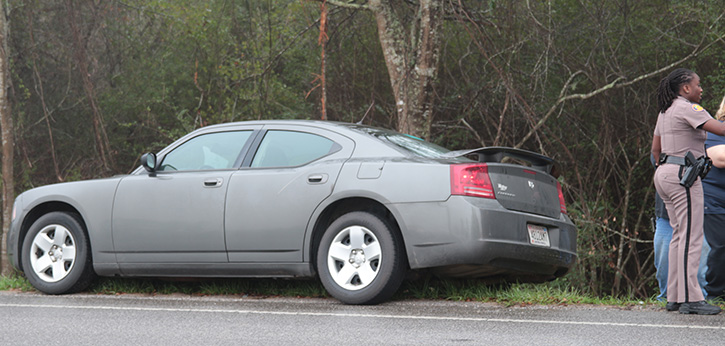 Pictured top and inset: Two of four vehicles involved in a crash on Kingsfield Road at the entrance to Tate High School. Pictured below: A single vehicle crash Friday morning on Highway 95A near Jim Allen Elementary School. NorthEscambia.com photos by Kristi Price, click to enlarge. Pictured bottom: This vehicle was rear-ended in two vehicle crash that occurred at the entrance to Northview High School. NorthEscambia.com photos, click to enlarge.