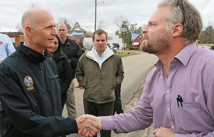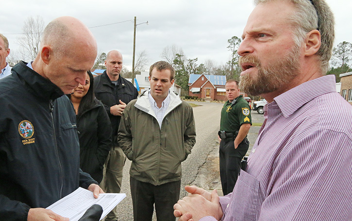 When Gov. Rick Scott toured the tornado damage in Century last week, it presented Bachman with a sudden and unexpected opportunity to discuss his battles with state government face to face with the state’s top elected official.