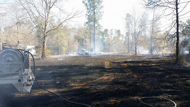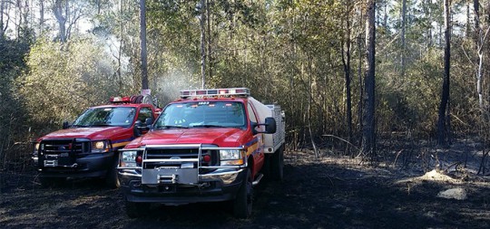 The fire off Parker Lane, near Hendricks Lane, consumed a large grassy area and moved into a wooded area. Firefighters from the Molino, McDavid, Walnut Hill and Cantonment stations of Escambia Fire Rescue and the Florida Division of Forestry battled the blaze with two bulldozers.