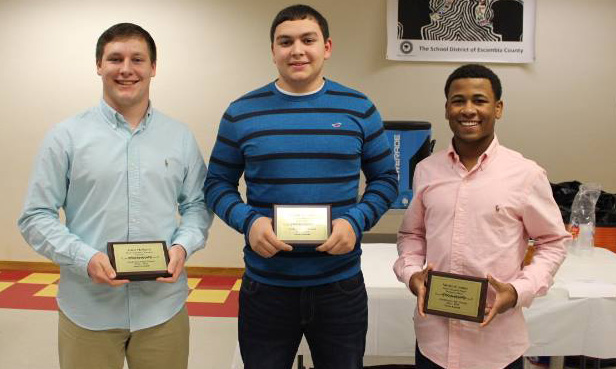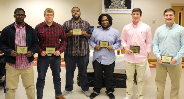 Pictured: Seniors were also honored. (L-R) Tyler Berry, Zach Steele, LaDarius Thames, I’siah Dunn, Jacob Dunsford and Zachary Holland. Photos by Melissa Ward for NorthEscambia.com, click to enlarge.