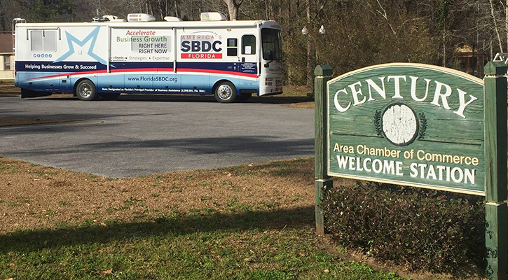 The FSBDC at UWF has partnered with the Century vouncil members and city officials to place the MAC—a 38-foot RV equipped with laptops, printer, satellite communication, and more—at the Century Chamber of Commerce. Florida SBDC at UWF disaster specialists will be available on-site to help affected businesses prepare disaster loan applications and with other post-disaster challenges.