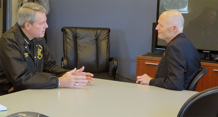 Governor Rick Scott was in Pensacola Wednesday, visiting with Escambia County Sheriff David Morgan to learn about the tornado damage in Century.