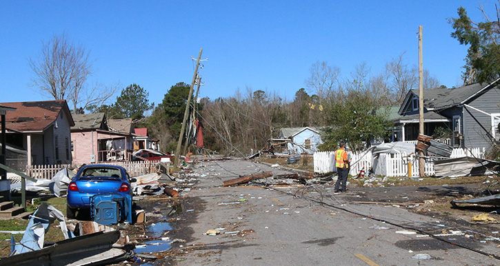 Since the tornado, it had been a cycle of sorts of sounds on Front Street. The sirens, the first responders going house to house looking for survivors the first night and the first morning after the EF-3. The Tuesday after the storm, the sounds of Front Street, ground zero, were not normal. Most residents were gone; the area was secured and locked down by the Sheriff’s Office. As the day progressed, there was the sound of more and more chainsaws and bucket trucks as a small army of utility workers labored to clear downed lines and restore power, TV and phone lines.