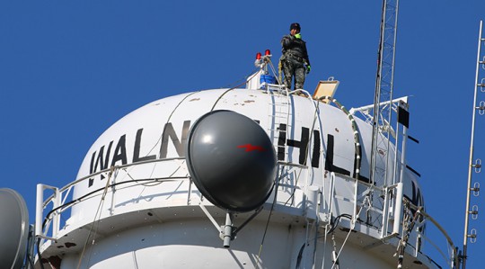 Wednesday was breezy and cold, with winds gusting to about 20 mph — just like the cool, windy day on Tuesday. While many people are required to work outside in cold weather, we found a few men on a job Tuesday that really exposed them to the cold wind — working at the top of one of the water towers in Walnut Hill. NorthEscambia.com photos, click to enlarge.