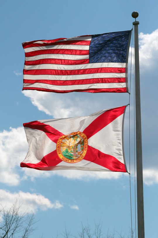 Pictured: Wind whips flags in Bratt Monday afternoon. Windy conditions are expected again to day. NorthEscambia.com photo, click to enlarge.