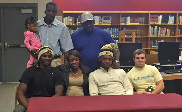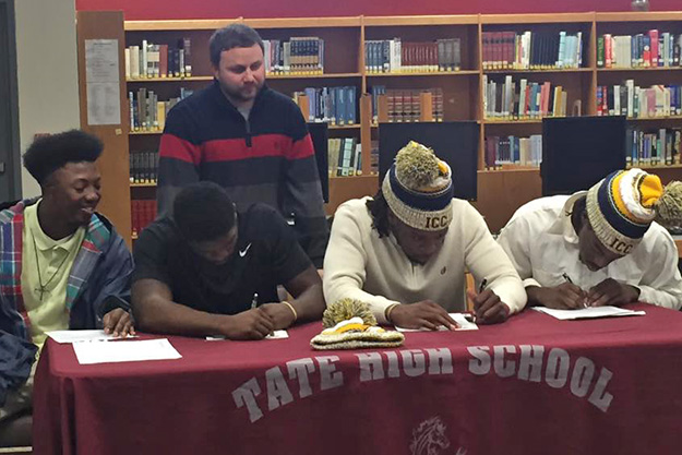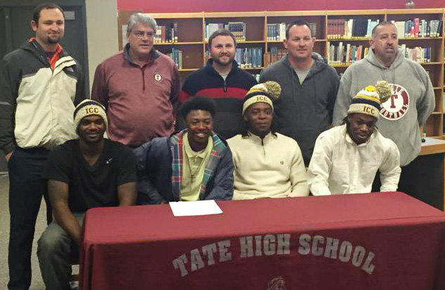 Four Tate High School seniors signed their letters of intent Wednesday for full scholarships at the same Kansas school. Monty Brown, Dee Thompson, Alonte Thompson, Alondo Thompkins all signed with Independence Community College in Independence, KS. The ICC Pirates are members of the National Junior College Athletic Association and the Kansas Jayhawk Community College Conference. Photos by Tina Decoux for NorthEscambia.com, click to enlarge.