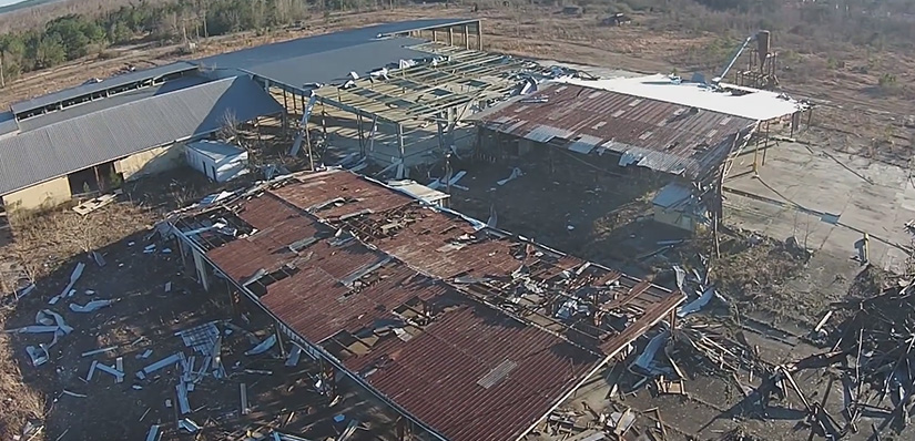 Before the tornado, the former Alger-Sullivan property included 330,200 square feet in eight buildings on 38 acres, all zoned commercial and located near the railroad with a CSX spur available. Local real estate listings show a $1.5 million asking price on the property, which is owned by a group of investors based in Destin, before the tornado.