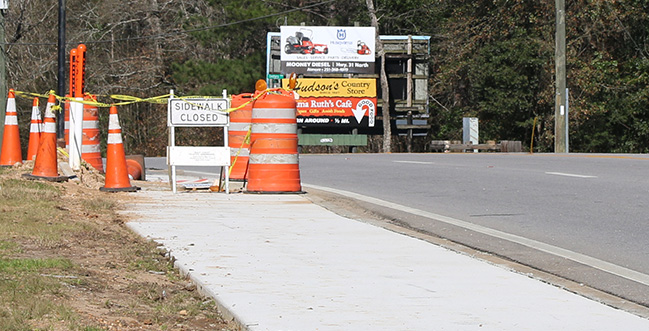 Pictured top: Sidewalk work, including some lane closures, continues in Century. NorthEscambia.com photo, click to enlarge.