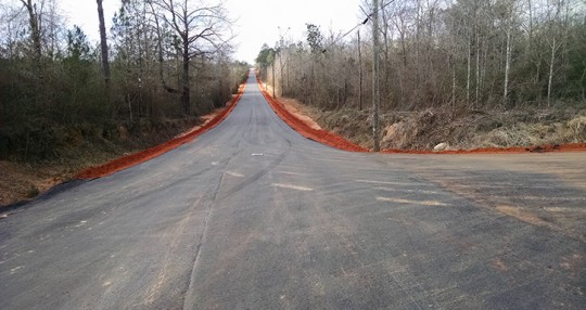 Escambia County recently finished paving the remainder of Becks Lake Road in Cantonment. A portion of the road had been left unsurfaced many years ago due to a right of way dispute. Pictured: Becks Lake Road from the entrance to the Becks Lake Fish Camp, looking back west toward Cantonment. Photo for NorthEscambia, click to enlarge.