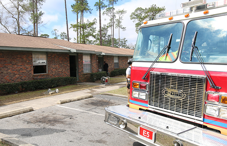 The fire, which reportedly began with a pot of grease on a stove, was quickly extinguished before it spreading beyond the kitchen in the 300 building of the Century Woods Apartments on West Highway 4.