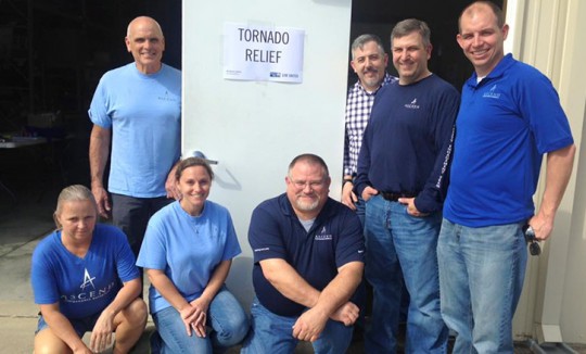 Pictured top: Volunteers from Ascend Performance Materials in Cantonment volunteer at the United Way free “store” for tornado victims in Pensacola. Courtesy photo for NorthEscambia.com, click to enlarge.