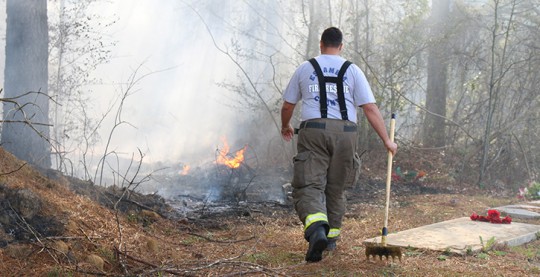 Firefighters battled a wildland fire in Walnut Hill Tuesday afternoon. The fire burned over about an acre and a half near the dead end of Juniper Street. It burned near several homes, a church and cemetery, but no structures were threatened by the blaze.