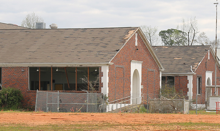 During the EF-3 tornado that struck Century on February 15, the main potion of the old high school was heavily damaged, with windows broken and window frames pushed inward. The football stadium, including the press box, was also structurally damaged.