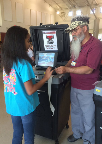Staff from Escambia County Supervisor of Elections David Stafford’s office were at Tate High School Wednesday. The SOE staffers assisted students with SGA election voting and also held a voter registration drive. Photos for NorthEscambia.com, click to enlarge.