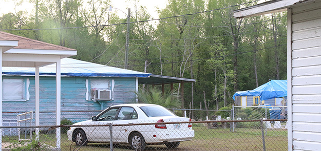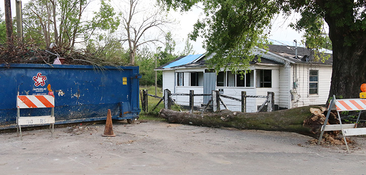 Wade and Mary Barnes own a small wood frame home in the 6900 block of Jefferson Avenue — in the midst of one of the areas hardest hit by the EF-3 tornado that hit Century February 15. The rental house fared better than most in the immediate area, suffering broken windows, roof damage and downed trees and limbs. The roof has been tarped, many of the broken windows have been covered temporarily with sheet metal, and limbs have been placed in a burn pile awaiting a permit from the Florida Forest Service.
