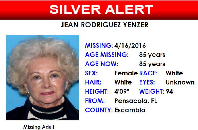 Update 6 p.m.: This missing senior silver alert has been canceled after Jean Rodriguez Yenzer was located as is safe.