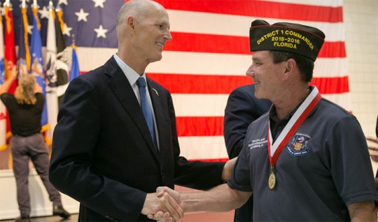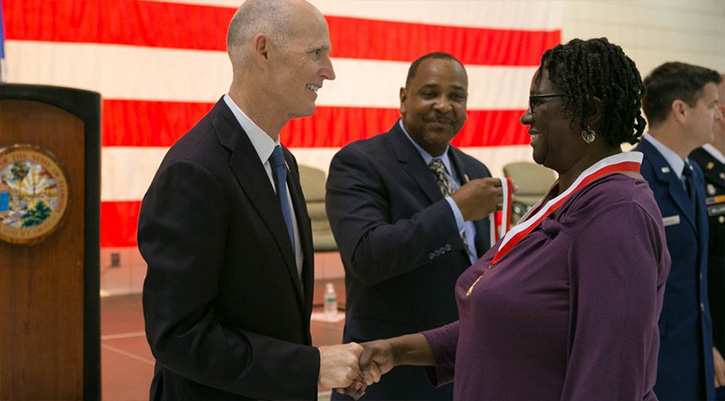 While at the National Guard Armory in Pensacola, Scott awarded 122 veterans with his Veterans Service Award.