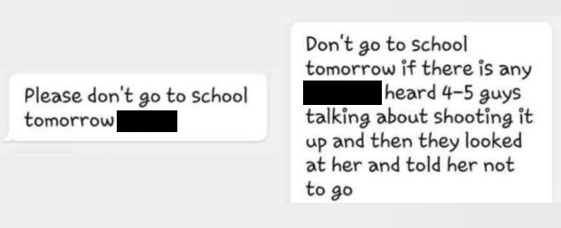 The rumor began making the rounds a little before 10 p.m. Tuesday as text messages were spread between students. Rumors of those text message threatening a violent act were then posted and spread on social media, often by parents concerned about their children.