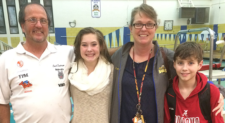 Pictured: Ernest Ward Middle School Dive Team Coach Randy Sanderson, Jayda Crabtree, Coach Betty Coon, Louis Crabtree III. Submitted photo for NorthEscambia.com, click to enlarge.