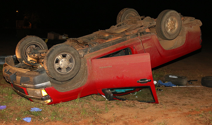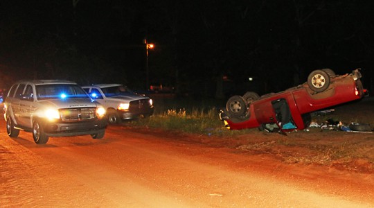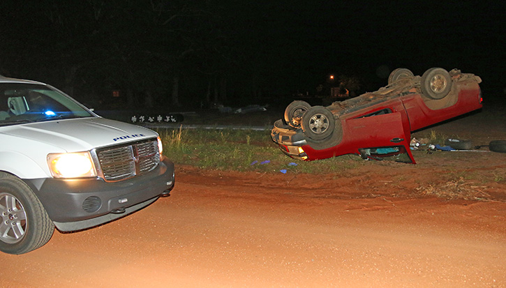 As the pursuit continued south on Highway 99, the driver turned onto Cecils Road, a dirt road about 1.2 miles south of the state line in Bratt. The driver, later identified as 36-year old Tabatha Faye Boutwell of Walnut Hill, lost control on the sandy road and overturned into a field about 400 feet later.