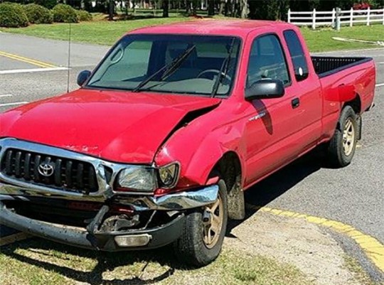 The accident was reported about 10:40 a.m. on Highway 29 near Chance Road. Witnesses said the pictured red pickup truck struck a late model green SUV that fled the scene. The red pickup was then rear-ended by another pickup truck.