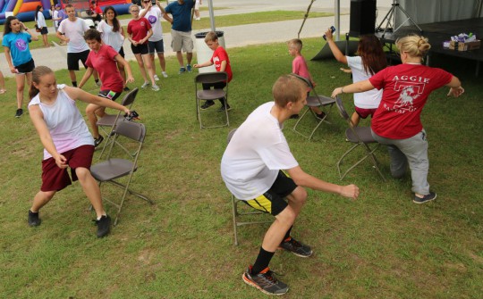 Pictured top: Relay teams in a game of musical chair. Pictured inset: Walking the track. Pictured below: The Greater Escambia Relay for Life at the Pensacola Interstate Fairgrounds Saturday. NorthEscambia.com photos, click to enlarge.