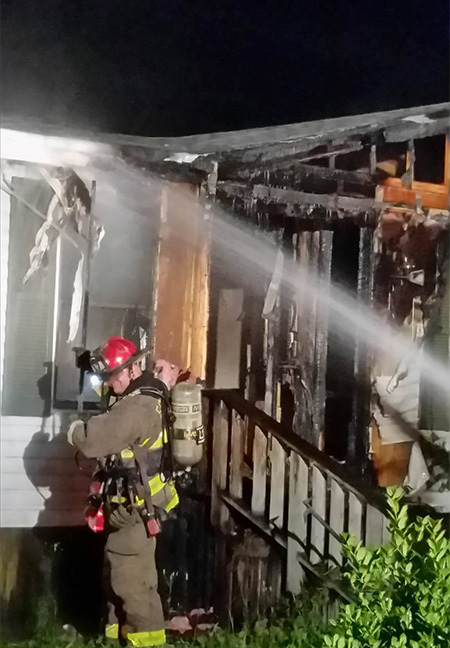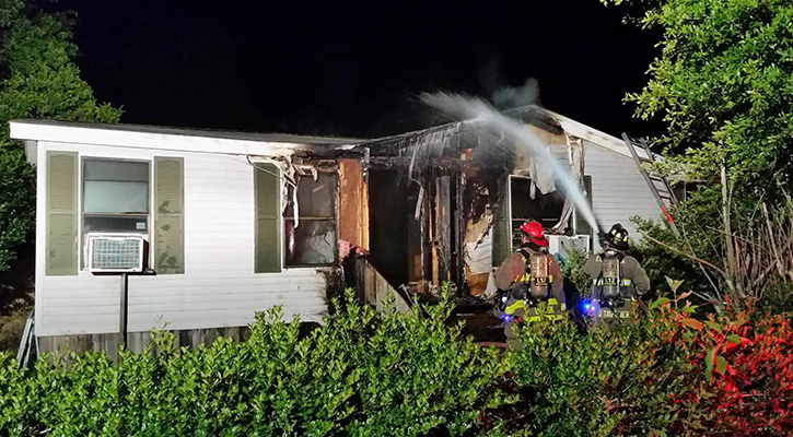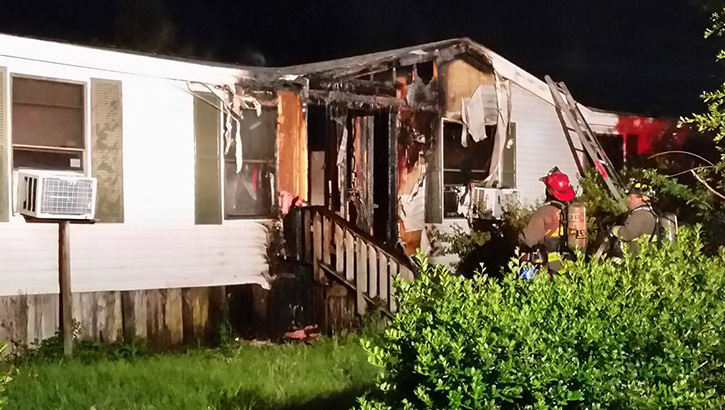 Fire heavily damaged a mobile home early Sunday morning in Ensley. The fire was reported just after 1 a.m. in the Lost Oaks Mobile Home Park in the 8900 block of Chemstrand Road, south of Nine Mile Road. The first 911 callers reported flames coming from the mobile home. Firefighters were able to quickly bring the fire under control. There were no injuries reported. NorthEscambia.com photos by Kristi Barbour, click to enlarge.