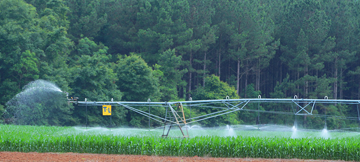 Pictured above: Farmers are in for some much needed rain during the rest of this week. Shown is an irrigation system running Monday afternoon in a Walnut Hill corn field. NorthEscambia.com photo.