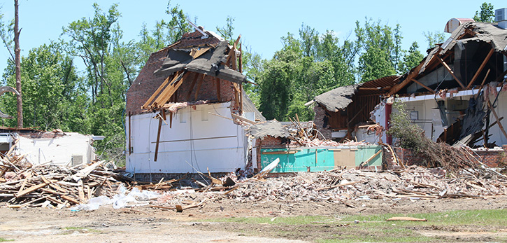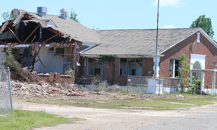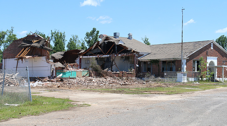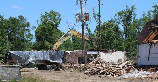 Work is well underway to demolish the former Century High School on Hecker Road due to tornado damage.